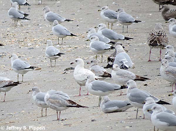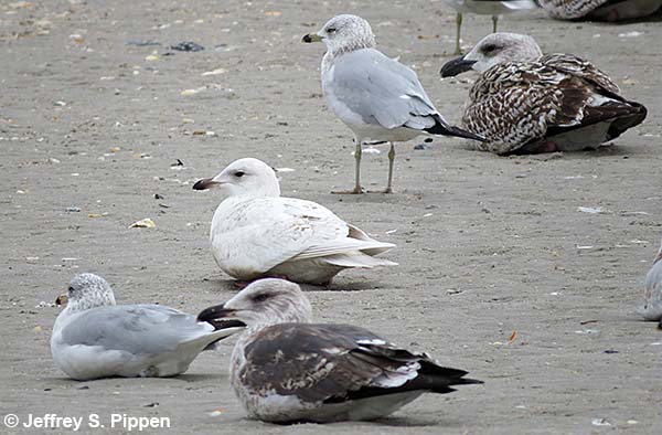 Iceland Gull (Larus glaucoides) Wrightsville Beach, New Hanover Co., NC 3 Jan 2015 With 2 Ring-billeds, Lesser Black-backed, and Great Black-backed Gulls |