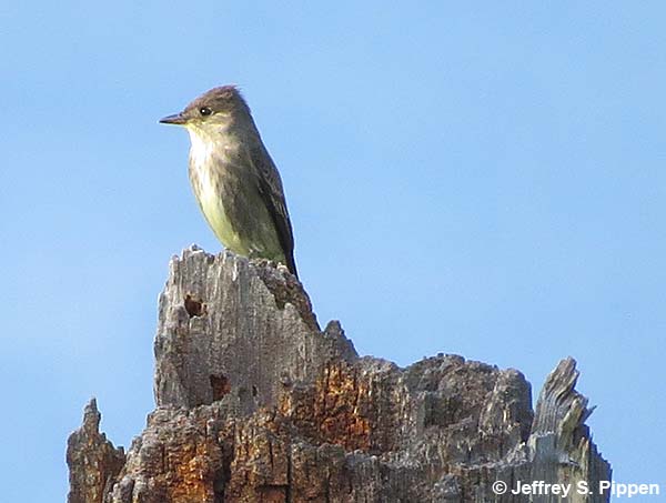 Olive-sided Flycatcher (Contopus cooperi) Mt. Baldy, Missoula Co., MT 8 June 2014 They usually show an obvious dark "vest". |