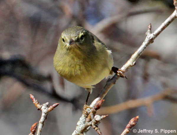 Orange-crowned Warbler (Oreothlypis celata) Missoula Co., MT 19 Sep 2013 The orange crown spot is visible close up. |