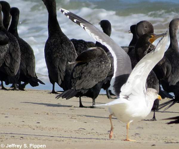 While not visible here, the underwingtip showed a relatively small amount of black (whereas Yellow-legged Gulls L. michahellis generally show quite a bit of black there). We did observe a large white "window" in P-10 and a small dot in P-9, and Brian Patteson has a great photo of this. |