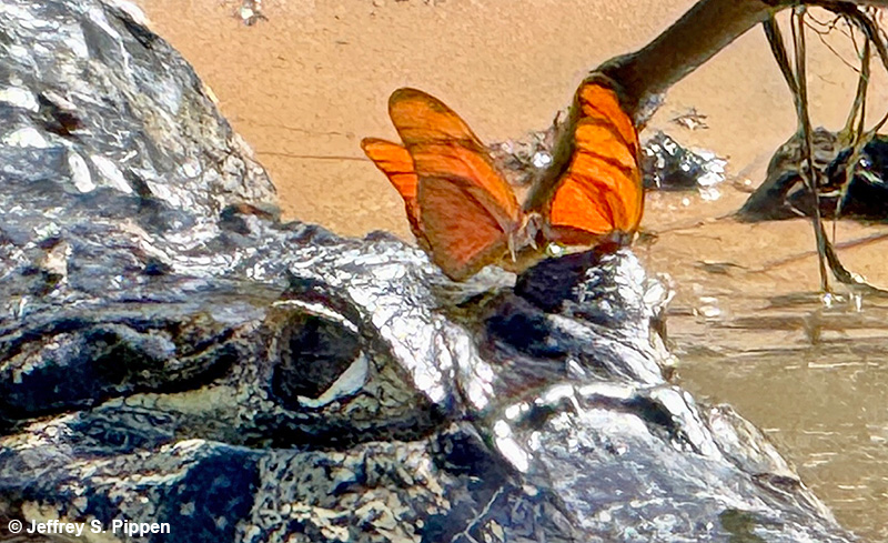 | Julia Heliconian (Dryas iulia) Porto Jofre, Mato Grosso, Brazil 1 Aug 2025 Canon PowerShot photo on a Yacare Caiman with a fish in its mouth | |