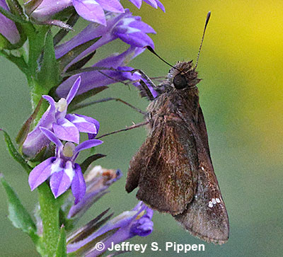 | Clouded Skipper (Lerema accius) Nectaring on Common Selfheal (Prunella vulgaris) Washington Co., NC 19 June 2004 |
