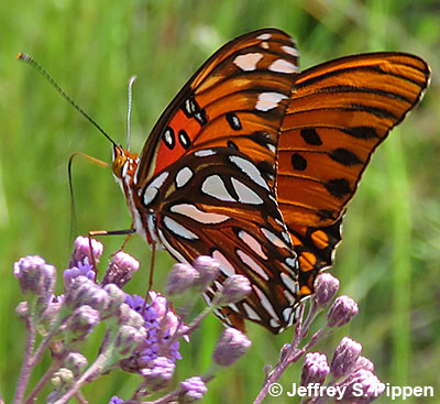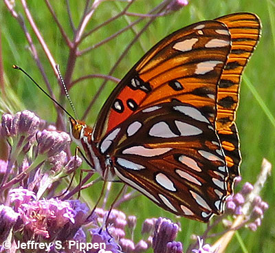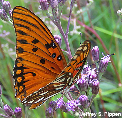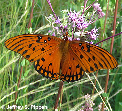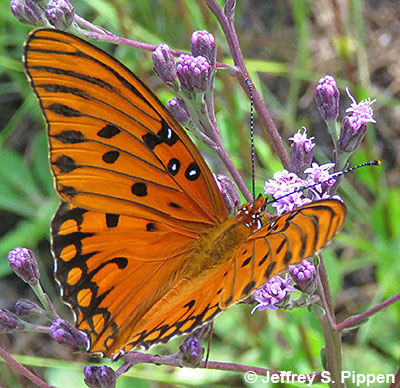 |  | Gulf Fritillary (Dione incarnata nigrior) Brunswick Co., NC 4 Oct 2008 Nectaring on Blazing Star. |