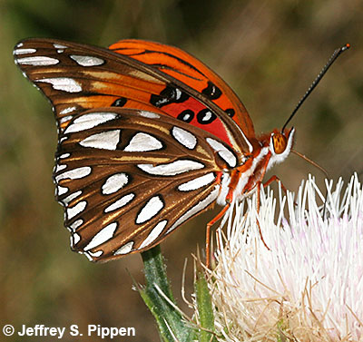 |  | Gulf Fritillary (Dione incarnata nigrior) Brunswick Co., NC 29 Oct 2006 |