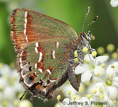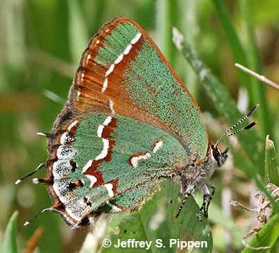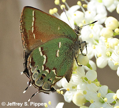 | 'Siva' Juniper Hairstreak (Callophrys gryneus siva) Arrow Creek Breaks, Fergus Co., MT 8 June 2016 |