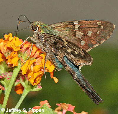 Long-tailed Skipper (Urbanus proteus) New Hanover Co., NC 31 Aug 2003 Nectaring on Lantana |