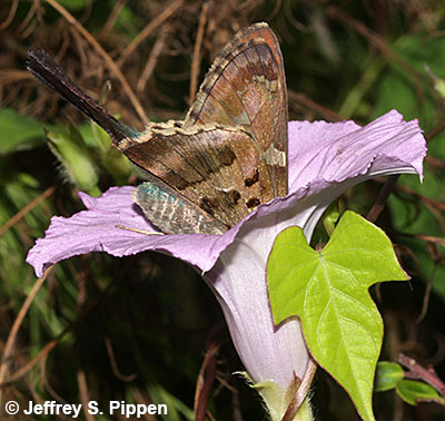 | Long-tailed Skipper (Urbanus proteus) Nectaring on Elephantopis caroliniensis Chatham Co., NC 17 Sep 2005 |