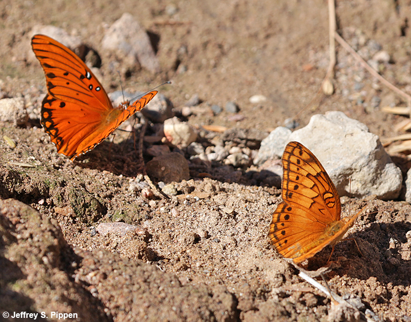 Mexican Fritillary (Euptoieta hegesia) Santa Cruz Co., AZ 5 Nov 2024 Side by side with a Gulf Fritillary on the left |