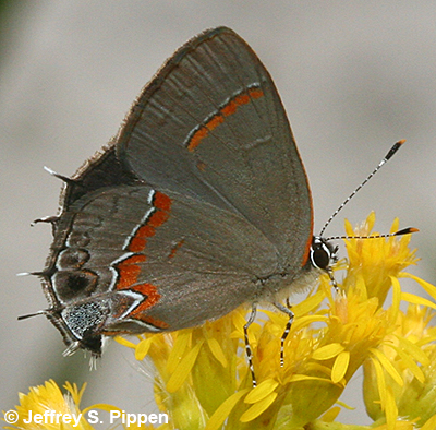 | Red-banded Hairstreak (Calycopis cecrops) Brunswick Co., NC 4 Oct 2008 |
