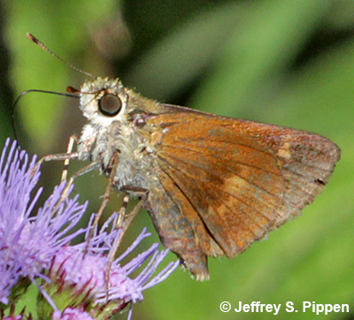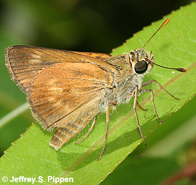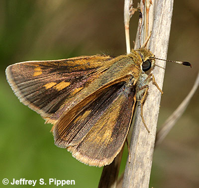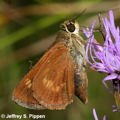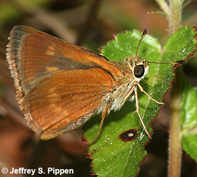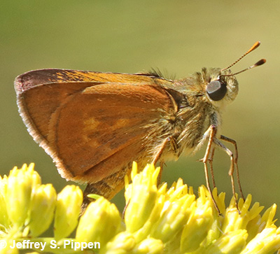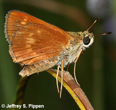 Southern Broken-Dash (Wallengrenia otho) Orange Co., NC 7 June 2006 The very rich rusty brownish-orange color, relatively small size (for skippers in general), and "3" shaped mark in underhindwing distinguish this from other species. |