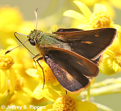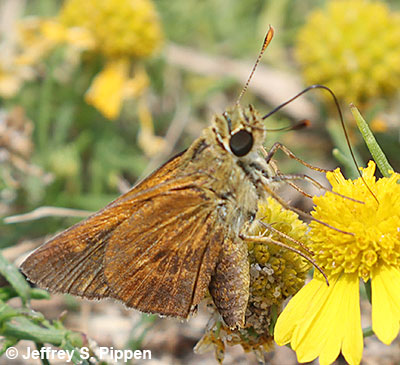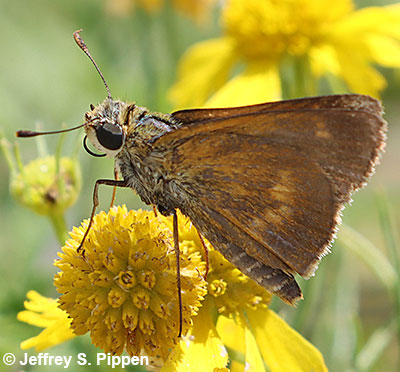 Southern Broken-Dash (Wallengrenia otho otho) Bodie Island, Dare Co., NC 4 Sep 2023 Nectaring on Helenium amarum. |