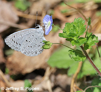 Summer Azure (Celastrina neglecta) Orange Co, NC 20 May 04 Note the dorsal color of the roadkilled victim. |
