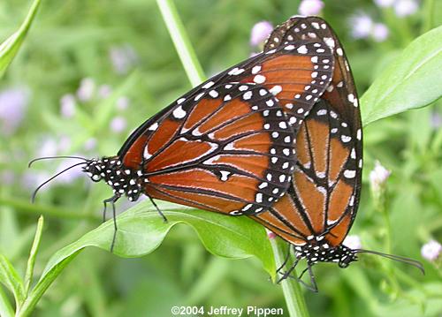 Queen (Danaus gilippus), mated pair Lucy's Garden, Mission, Hidalgo Co., TX 13 Oct 2004 |