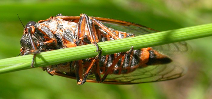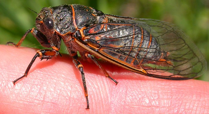 Some kind of cicada checks out my finger. Big Springs Hollow, Utah Co., UT 18 June 2005 |