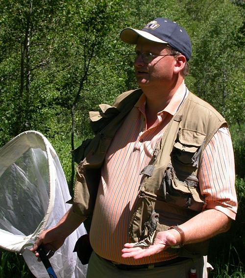 Here I am shooting pics of Common Ringlet (Coenonympha tullia brenda). Photo by Todd Stout. |