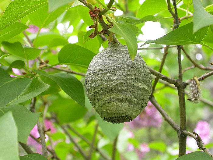 Neat little wasp nest, a little smaller than a baseball. |