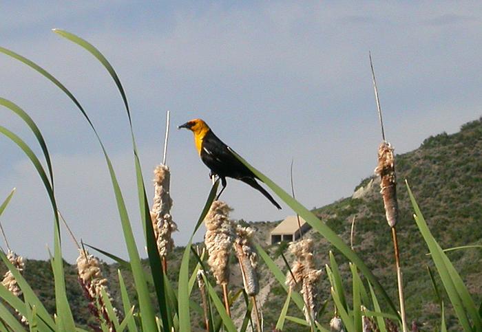 This Yellow-headed Blackbird was building a nest in the nature preserve below Jordanelle Dam. |
