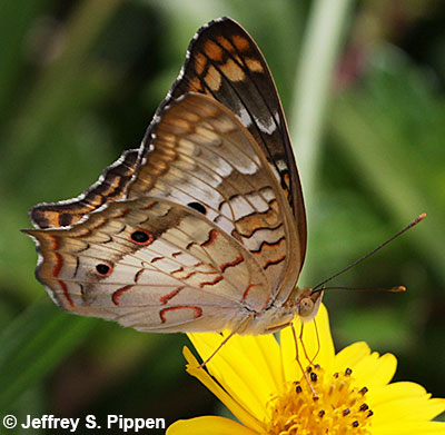 White Peacock (Anartia jatrophae) Collier Co., FL 31 Dec 2008 Where common, White Peacocks are found in disturbed open areas with flowers like fields, roadsides, etc. |