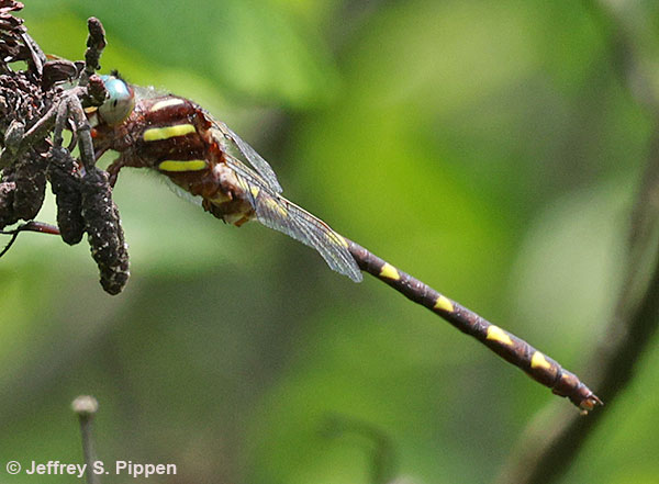 Brown Spiketail (Cordulegaster bilineata) Floyd Co., VA 23 June 2007 Adults have green eyes. |