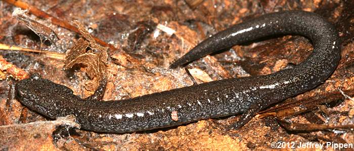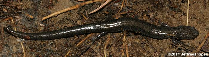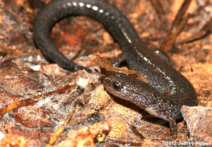 Red-backed Salamander (Plethodon cinereus) Under cover board in mixed pine/hardwoods in Duke Forest Durham Co., NC 11 Mar 2012 Some Red-backed Salamanders lack the reddish stripe and are referred to as "lead-backed" salamanders. |
