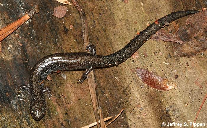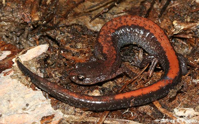 Red-backed Salamander (Plethodon cinereus) Under leaf litter in mixed pine/hardwoods in Duke Forest Durham Co., NC 9 Feb 2008 |