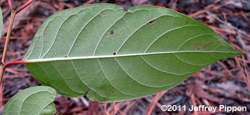 Buttonbush (Cephalanthus occidentalis) Orange Co., NC 7 Sep 2011 Leaves are simple, opposite, entire, and often have reddish petioles. |