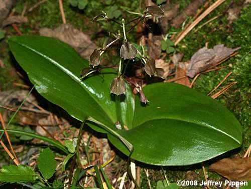 Brown Widelip Orchid, Lily-leaved Twayblade (Liparis liliifolia) Orange Co., NC 15 May 2008 |