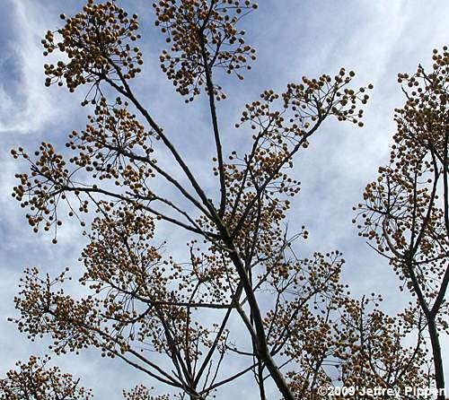 Chinaberry (Melia azedarach) Disturbed woods edge in Chapel Hill, Orange Co., NC 27 Dec 2009 Easily recognized in winter by its loose clusters of pale fruits. |