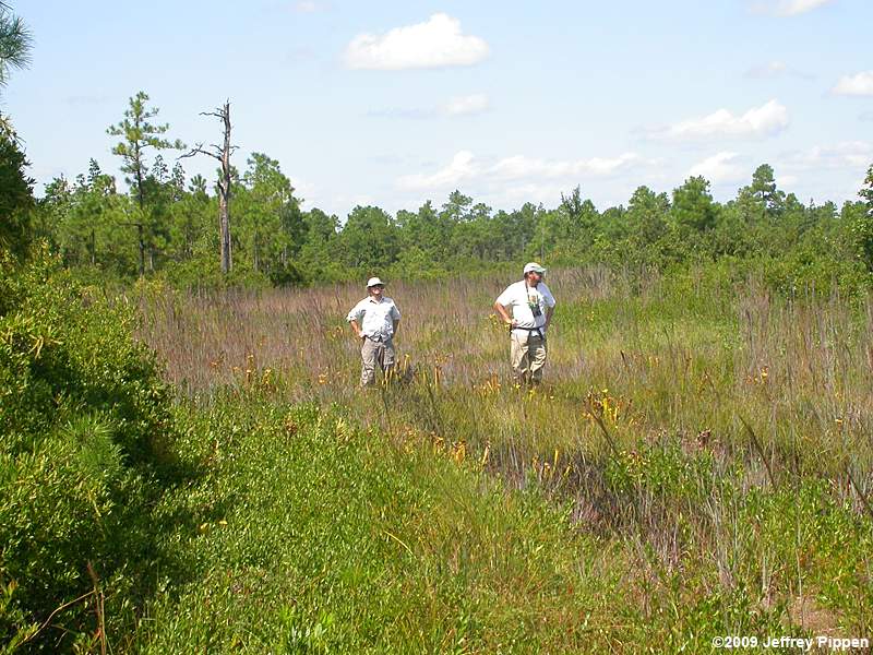 Note the pale yellow patches of Yellow Pitcher Plants (Trumpets), Sarracenia flava. 9/13/2009 |