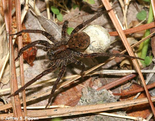 Carolina Wolf Spider (Hogna carolinensis) In Longleaf Pine flatwoods under log in Scotland Co., NC 14 June 2008 |