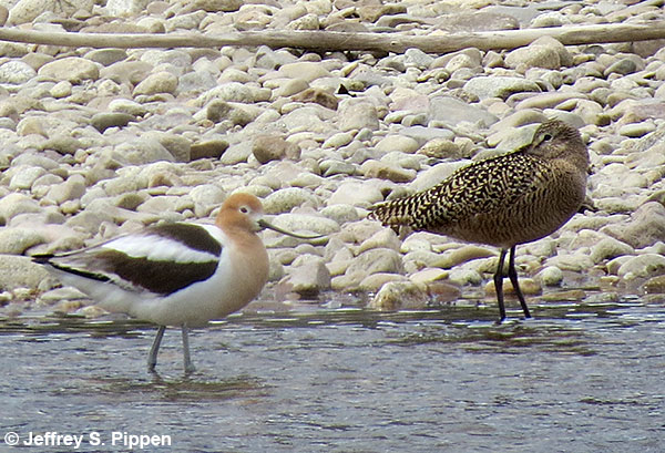 American Avocet (Recurvirostra americana) and Marbled Godwit (Limosa fedoa) Bitterroot River, Missoula Co., MT 29 Apr 2015 |