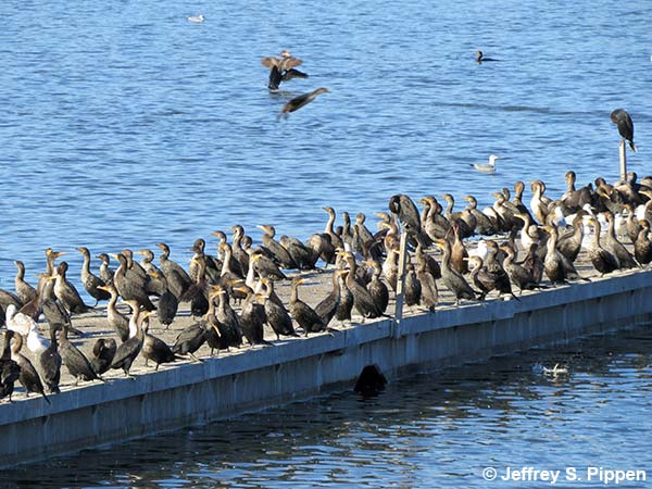Double-crested Cormorant (Phalacrocorax auritus) Jordan Lake, Chatham Co., NC 28 Jan 2015 Hundreds of cormorants perched on this breakwater by the marina. |