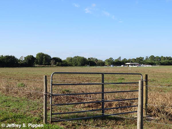 Limpkin (Aramus guarauna) Collier Co., FL 10 Feb 2014 Wet field adjacent to swampy habitat is where these Limpkins were feeding. |