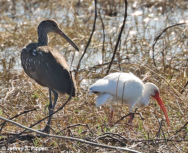Limpkin (Aramus guarauna) Collier Co., FL 25 Jan 2023 With a Glossy Ibis |
