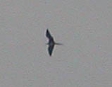Magnificent Frigatebird (Fregata magnificens) On 5 Nov 2005 an unprecedented 5 individuals (at least!) were seen along Cape Hatteras National Seashore from Cape Point to Pea Island. On the following day (6 Nov 2005) I found this one cruising overhead along the Old Nags Head Rd., Dare Co., NC This photo was taken with a Nikon CoolPix 4500 at a zoom of 4X. |