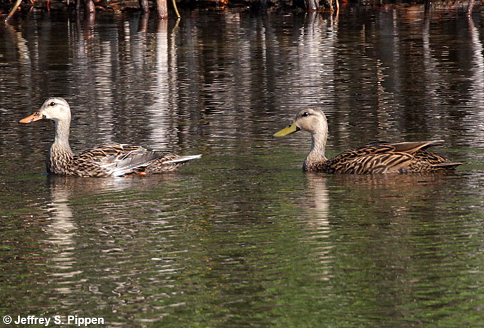 Mottled Duck (Anas fulvigula) Brunswick Co., NC 24 Nov 2007 Brighter-billed male is on the left, female on the right. |