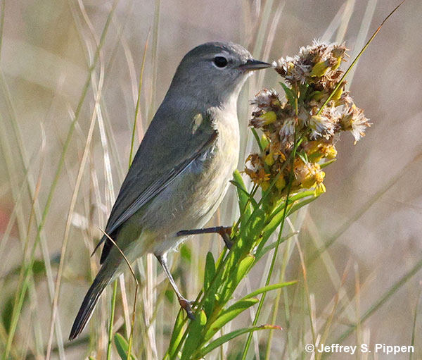 Orange-crowned Warblers (Oreothlypis celata) Pea Island NWR, Dare Co., NC 18 Oct 2025 Foraging in goldenrod flower/fruit clusters |