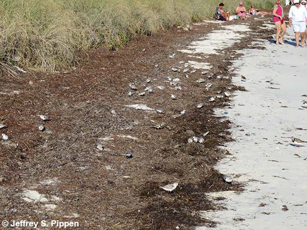 Sanderlings (Calidris alba) and Ruddy Turnstones (Arenaria interpres) Bahia Honda State Park, Monroe Co., FL 11 Feb 2015 Feeding in the rack line and sharing the area with beachgoers. |