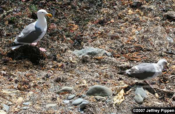 Adult on the left with a 3rd year bird on the right. San Simeon, CA 8 July 2007 |