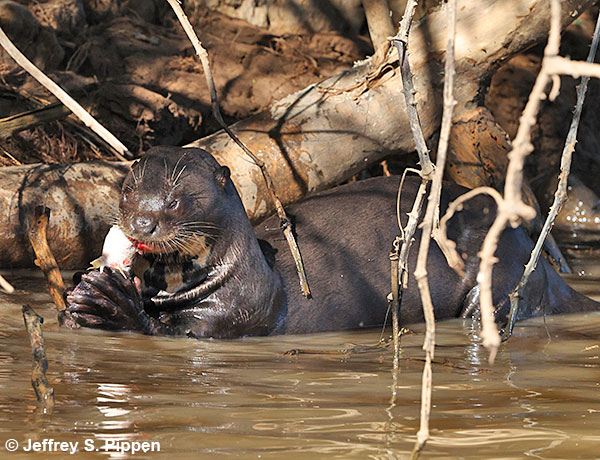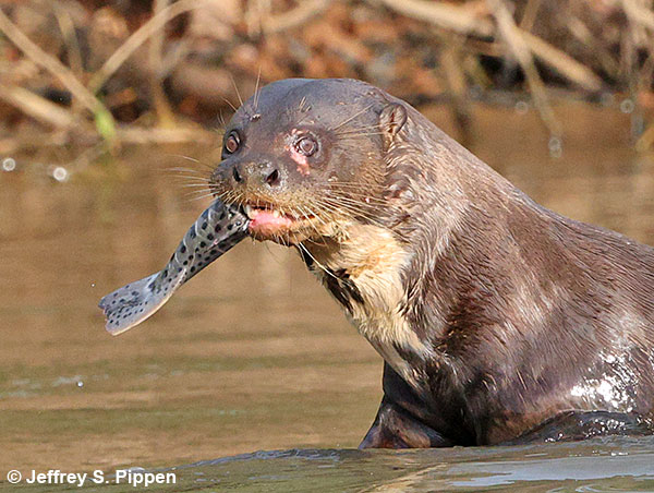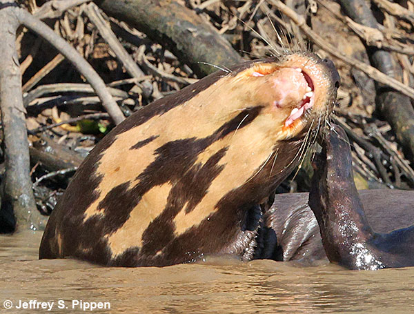 Giant Otter (Pteronura brasiliensis) Porto Jofre, Mato Grosso, Brazil 31 July 2025 Giant Otters are apex predators with no significant "enemies" other than humans. They primarily eat fish. |