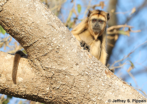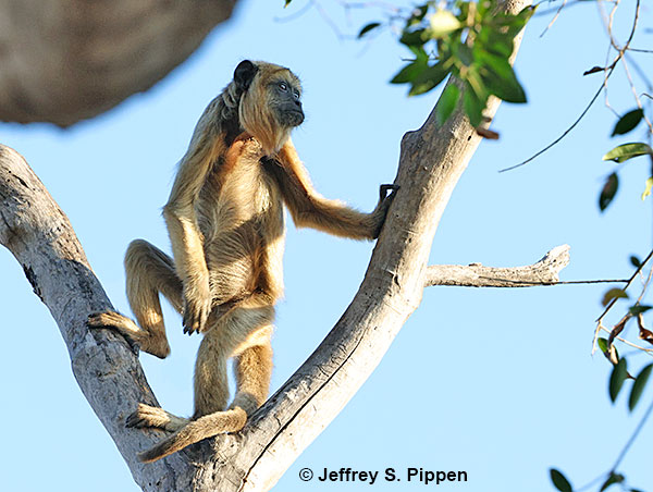 Black Howler (Alouatta caraya) Pousada Piuval, Mato Grosso, Brazil 28 July 2025 Females are quite golden colored, hence the alternate common name of Black-and-gold Howler. |