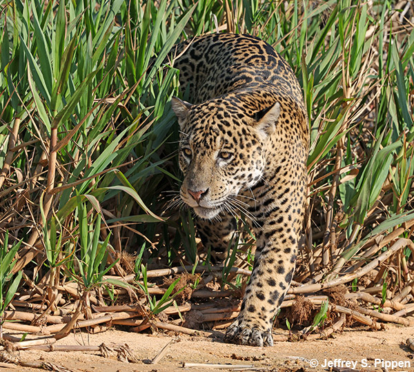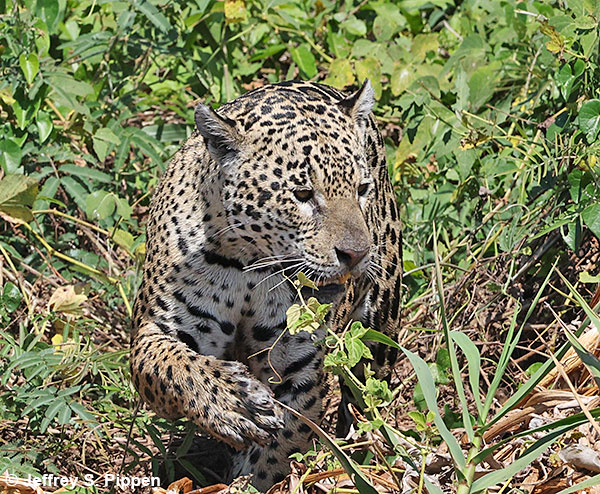 "Bagua" Jaguar (Panthera onca) Porto Jofre, Mato Grosso, Brazil 30 July 2025 We were fortunate to have 20 sightings of 12 different Jaguars. Each Jaguar has been given a name by the Jaguar Identificiation Project. Click here for more of Jeff's Jaguar photos and information about each Jaguar' personal name. |
