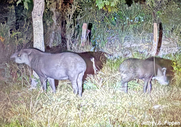 South American Tapir (Tapirus terrestris) Pousada Piuval, Mato Grosso, Brazil 30 July 2025 Grainy nighttime photo with no flash, Canon R5m2 f/8 1/200 ISO 51200, RF100-500 |