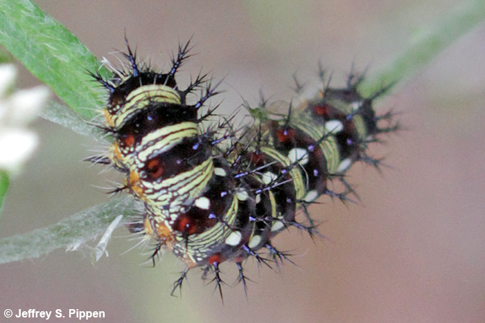 American Lady (Vanessa virginiensis) caterpillar Duke Forest, Durham Co., NC 4 Sep 2024 Feeding on Sweet Everlasting (Pseudognaphalium obtusifolium) |