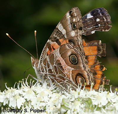 | American Lady (Vanessa virginiensis) Nectaring on Pycnanthemum tenuifolium Orange Co., NC 16 July 2003 |