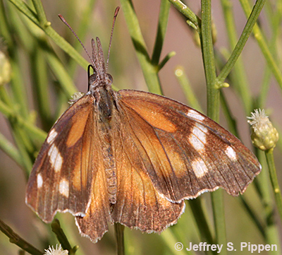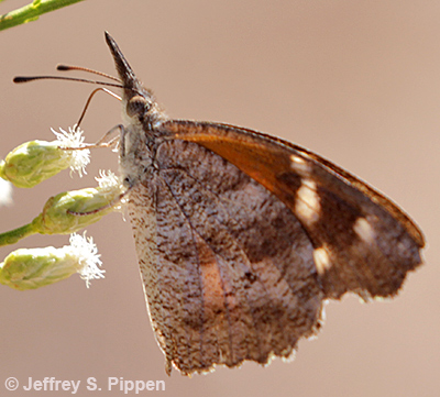 Snouts are distinctive among North American butterflies in having very long palps giving this species a "snout-like" appearance. These butterflies are usually seen on dirt roads or landing on people to imbibe salts. It's somewhat uncommon to encounter them nectaring.