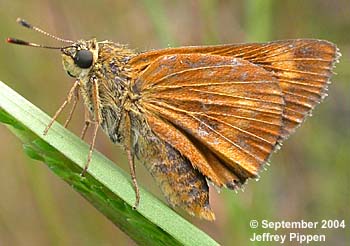 Byssus Skipper (Problema byssus), Worn female Brunswick Co., NC 4 September 2004 |