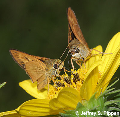 Byssus Skipper (Problema byssus) Duke Forest, Durham Co., NC 6 Sep 2020 I don't think things are going to work out for this amorous Fiery Skipper on the left... |