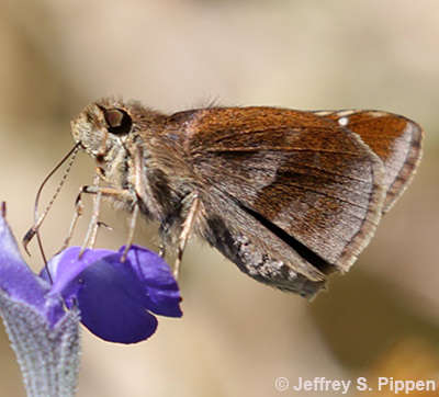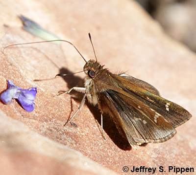 Clouded Skipper (Lerema accius) Nectaring on Common Selfheal (Prunella vulgaris) Washington Co., NC 19 June 2004 |