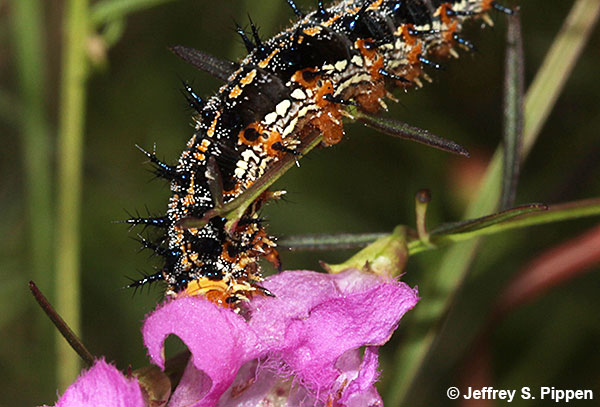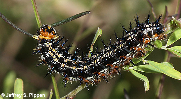 Common Buckeye (Junonia coenia) caterpillar on host plant, Agalinis purpurea New Hanover Co., NC 27 August 2005 |